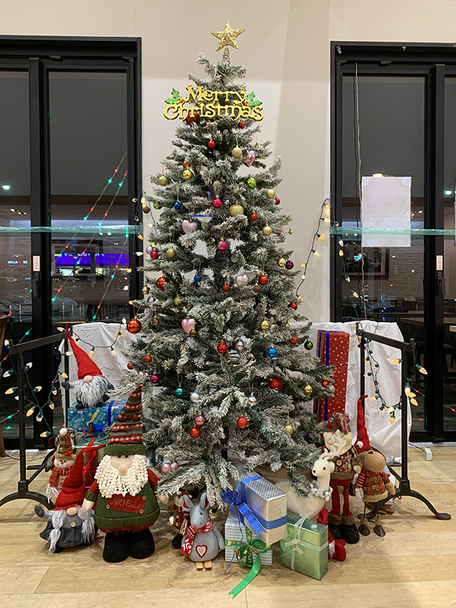 東京テレポート駅地上の観光案内所「お台場SKYツーリストインフォメーション」に飾られたツリーがお出迎え。