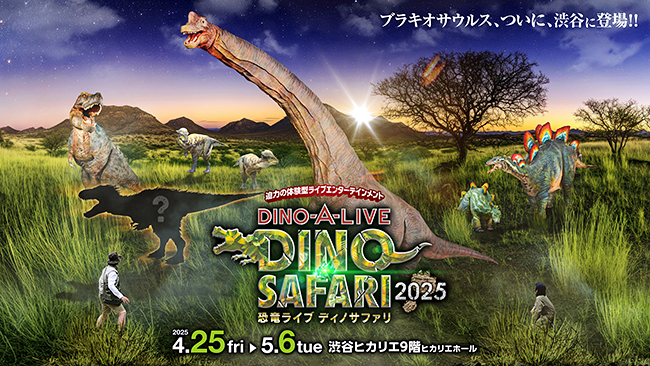 大迫力の恐竜が目の前に迫る毎回大好評の体験型「恐竜」ライブエンターテインメント「DINO SAFARI(ディノサファリ)」。2025年のゴールデンウィークの開催が決定!「DINO SAFARI 2025(ディノサファリ2025)」が、2025年4月25日(金)〜5月6日(火・振休)に渋谷ヒカリエで開催!
