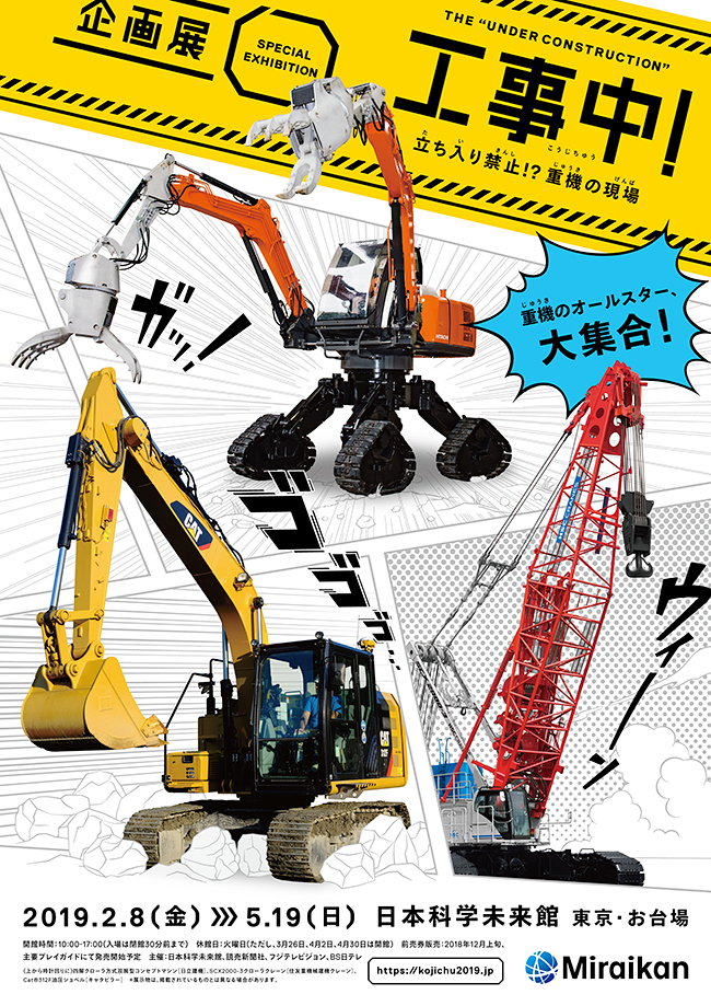 日本科学未来館は2019年2月8日(金)〜5月19日(日)まで、企画展「『工事中!』〜立ち入り禁止!?重機の現場〜」を開催します。